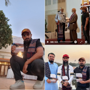 “Gov. Of Sindh Culture, Tourism And Antiquities Department” in collaboration with Monthly Magazine “Atraaf” (Event Organizer) have awarded me this shield in recognition to promote tourism in Sindh & all over Pakistan. Thanks to them and you guys who watch my vlogs on this page ❤️” Congrats to my fellow content creators (Adeel and Farooq Azam) as well.