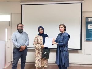 The chairperson Prof. Dr. Saima Akhtar congratulated the students and Dr. Mustafa Hyder encouraged them for their great learning experience and guided them for their future endeavors too.