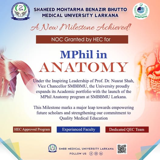 Driven by the persistent efforts and commitment of our Quality Enhancement Cell (QEC) team, this milestone reflects SMBBMUโs dedication to empowering future scholars and shaping the future of medical education.