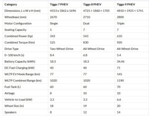 Chery Pakistan has not announced the official prices for the Tiggo 7 PHEV, Tiggo 8 PHEV, and Tiggo 9 PHEV . However, the company is expected to reveal more details about the models during the event.