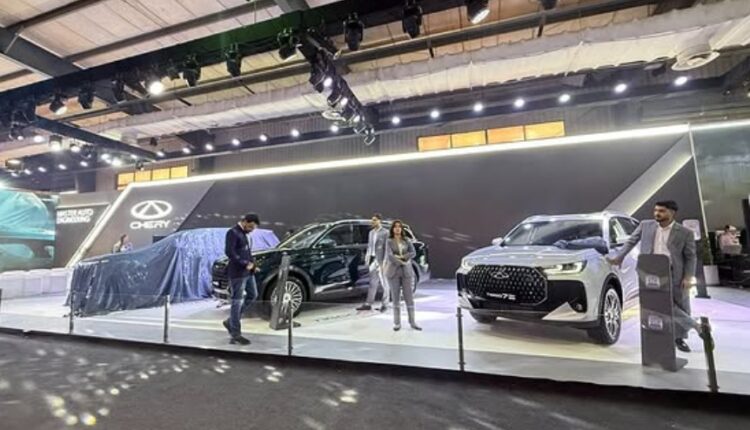 The display features the Tiggo 7 PHEV, Tiggo 8 PHEV, and Tiggo 9 PHEV, marking a major step in localizing electrified vehicles for the Pakistani market.