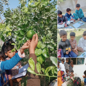 The students explored real flowers, touched the plants, and observed fruit-bearing trees up close. Through this simple nature walk, they learned the difference between flowering and non-flowering plantsโhow some plants bloom and produce fruits, while others grow quietly without flowers. A small activity, but a big step in helping them connect classroom knowledge with the world around them.