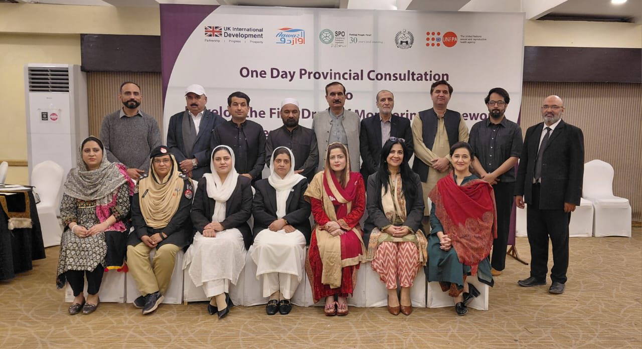 A One-Day Provincial Consultation to develop the First Draft of the Monitoring Mechanism Framework under the Domestic Violence Act (Khyber Pakhtunkhwa) was held on 24 November 2025 in Serena Hotel, Peshawar. The consultation was organized by SPO with technical support from UNFPA Pakistan, in collaboration with the Social Welfare, Special Education & Women Empowerment Department, Khyber Pakhtunkhwa, and supported by Foreign, Commonwealth & Development Office under the flagship Aawaz-II Program.