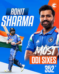 With a total of 352 sixes in ODI cricket, Rohit Sharma has become the highest six-hitter in ODI history, surpassing the legendary Shahid Afridi, who held the previous record of 351 sixes.