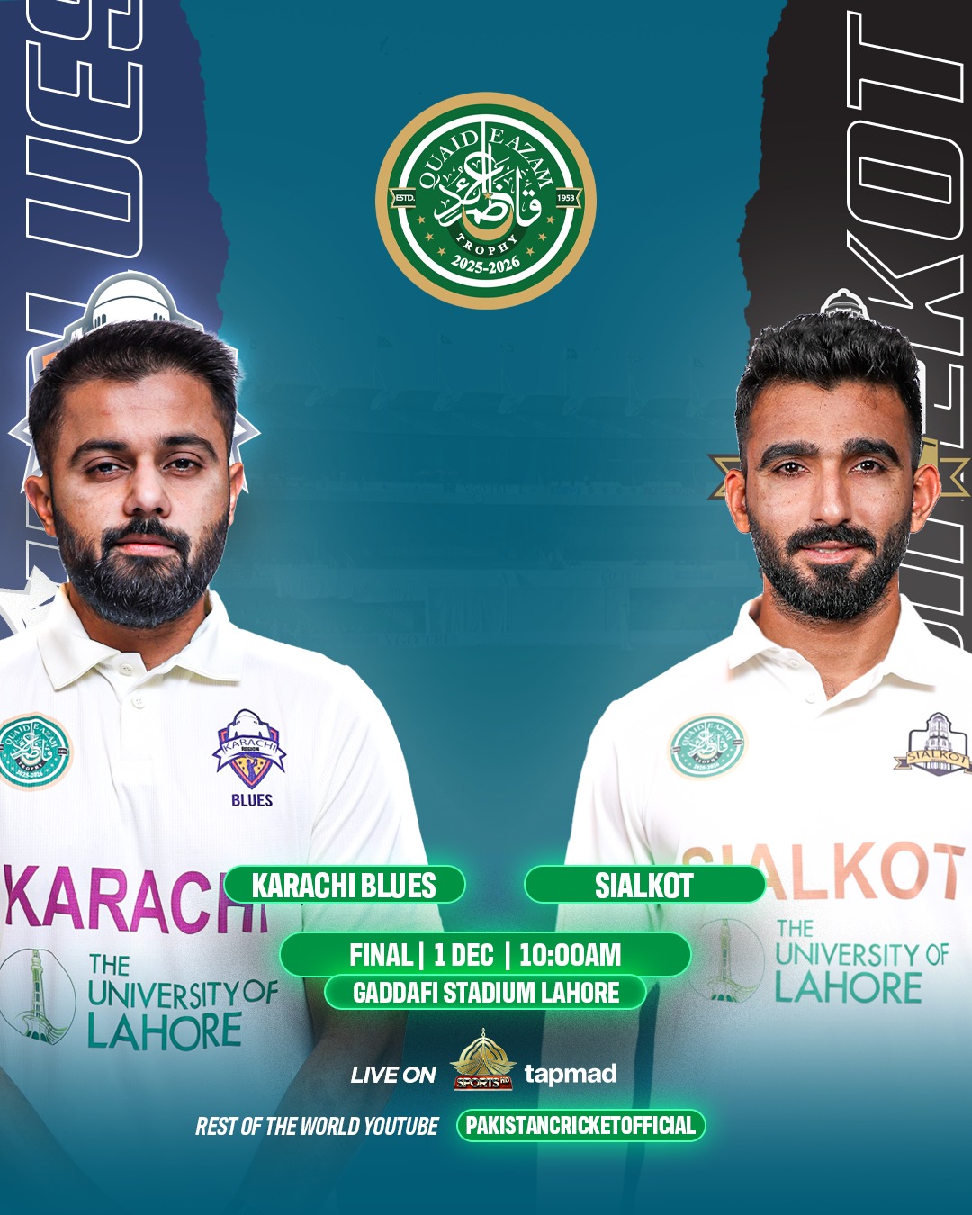 Sports Follow the Quaid-e-Azam Trophy 2025-26 Final action live! Jeevey Pakistan December 1, 2025 Spread the loveFollow the Quaid-e-Azam Trophy 2025-26 Final action live! 🏏 Karachi Blues 🆚 Sialkot 🏟️ Gaddafi Stadium, Lahore 🇵🇰 PTV Sports & Tapmad (Pakistan) 🌍 PCB YouTube Channel (Rest of the world) #QeAT | #KHIBvSKT Post Views: 22