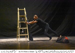 The Palestinian play “As If It Were a Dream,” written and directed by Mo’men Sa’di, narrates the life of a young Palestinian navigating the narrow alleys of the Jenin Refugee Camp alleys caught between checkpoints, soldiers, and shattered dreams. Amid this desolation, the young man nurtures an unlikely aspiration: to become an actor. The path, however, grows more painful as tragedies and separations increase. Torn between surrender and miraculous perseverance, he begins to realize that theatre is not merely performance, it is resistance .The stage becomes another frontline; words turn into weapons; acting becomes defiance against chains and darkness. The moving storyline gripped the entire hall. At the end, the audience rose to their feet, giving the Palestinian performers a standing ovation. Earlier, the 36th day of the festival began with a Sculpture Workshop conducted by Mozambican artist Luis M Santos, attended by students from the Arts Council’s Fine Art School as well as Makli and Sujawal’s Peoples School. During the session, Luis M Santos taught techniques of sculptural creativity and said that “You can create as much art as you want with your own effort—just keep working. Art is something we first create for ourselves; it is not necessary that everything must be sold. Look at this festival; see how the team is carrying it forward so successfully that it is art. In creativity, time does not matter.”