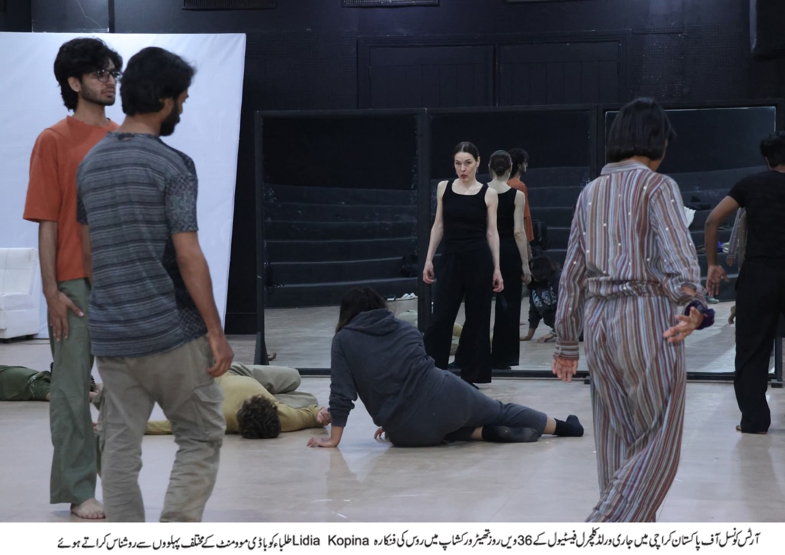 President Arts Council Muhammad Ahmad Shah also addressed the participants, saying, “If a person works hard, they can progress. The Arts Council is a place where everyone is equal, whether from Sindh, Balochistan, Punjab, or KPK. If you have the passion to learn, no power can stop you from moving forward. I am proud of all of you—you are the future of our art.” The second workshop, focused on theatre, was conducted by Russian artist Lidia Kopina, who trained students in techniques of body movement. The session was attended by Theatre Academy Director Khalid Ahmed and a large number of students. Lidia Kopina stated, “An actor must be able to control their voice. When you listen to the rhythm of your own voice and body, that is the moment you truly perform. This technique strengthens your acting.” In the third workshop, Brazilian artist Victoria Santos introduced students to modern photography techniques. She said that “Photographs create memories. I believe that good photography doesn’t depend on an expensive camera, but on passion. I capture whatever pulls me in; every picture tells its own story.” The fourth workshop, led by German artist Alina Belyagin, focused on hand-based dance techniques. Alina and Jay C Val also delivered an energetic performance, receiving loud applause from the audience. Alina remarked“While dancing, you must look into the eyes of your partner—connection is the soul of the performance.” The fifth Fine Art workshop featured Barbadian painter King Kesia, who taught students the creative process of painting. Students from Makli and Sujawal also attended. King Kesia explained“When blending two colors, move your brush as if it’s floating in the air. To create depth, the use of a third color is essential.”In the “Film Screening” segment, three British films HOME, The Frog in the Well, and Spring Amidst the Dust, were showcased. The 36th day concluded with a mesmerizing Qawwali Night, where the powerful performances of Fareed Ayaz and Abu Muhammad captivated the crowd. Joining them on stage were international musicians, including Japan’s Kenta Shoji, Algeria’s Farah Baba Ammi, Pakistan’s Fariha Chaudhry, Bangladesh’s Sultana Chaudhry, and Burkina Faso’s Zouratie Kone. Their cross-cultural collaboration added brilliance to the night, making it one of the festival’s most memorable evenings.