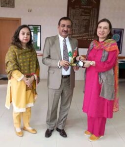 Director Centre of Excellence in Analytical Chemistry Prof Dr Amber Solangi is seen receiving the shield from the Vice-Chancellor Professor Dr Fateh Muhammad Marri, which she earned on the eve of 5th Pak-Turk International Conference on Chemical Science