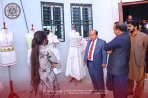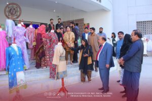 Prof. Dr Zahid Hussain Khand, the Vice Chancellor visited the display along with his team. He appreciated the studentsโ outstanding creativity, dedication, and craftsmanship, as well as the guidance provided by faculty members. The Vice Chancellor also purchased products made by the students and assured his full support in showcasing their work at renowned outlets and exhibitions across Pakistan.