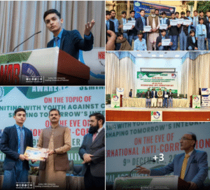 We are proud to announce that Agha Muhammad Asghar Khan, a brilliant student of GBHSS Memon Abdul Majeed Sindhi, Shikarpur, has won the NAB Sukkur Three-Division English Declamation Contest on anti-corruption. His remarkable achievement has earned him a fully funded scholarship at IBA Sukkur, courtesy of Prof. Dr. Asif Ahmed Shaikh, along with a laptop presented by Mayor Sukkur, Barrister Arsalan Islam Shaikh.