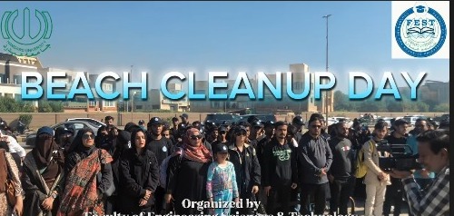 The initiative was led by Ms. Nageen Shahid, with active participation from FEST students, who demonstrated strong teamwork, civic sense, and environmental awareness. The day began with the National Anthem, followed by warm-up exercises, after which students engaged in beach cleaning, awareness-building, and interactions with media representatives.