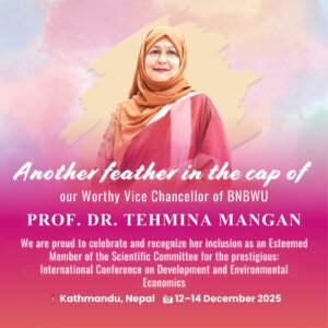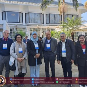 A true exemplary leader always leads from the front and serves as a role model for her followers through sustained academic excellence and global engagement. Reflecting this spirit, the Vice Chancellor of Begum Nusrat Bhutto Women University (BNBWU) Sukkur, Prof. Dr. Tehmina Nangraj, represented Pakistan at the International Conference on Development and Environmental Economics: SANDEE@25, held at the International Centre for Integrated Mountain Development (ICIMOD), Kathmandu, Nepal, from 12โ14 December 2025.