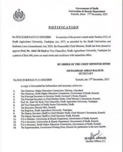 Latest News Heartfelt Gratitude to Meritorious Prof. Engineer Dr. Altaf Ali Siyal Jeevey Pakistan December 19, 2025 Spread the love Heartfelt Gratitude to Meritorious Prof. Engineer Dr. Altaf Ali Siyal for his well deserving position of Worthy Vice Chancellor of Sindh Agriculture University Tandojam. Many prayers and best wishes to you sir . Dr. Tahseen Fatima Miano Post Views: 13