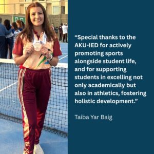 We are so proud to see our alumni excelling in their fields. Thank you, Taiba, for your dedication and for highlighting the importance of supporting both academic and athletic pursuits.