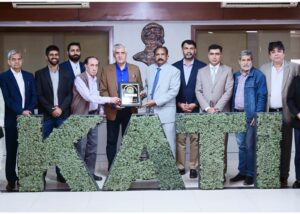 Photo Caption: KATI President Muhammad Ikram Rajput presenting a shield to SIEHS CEO Brigadier (Retd) Tarique Quadir Lakhiar. Senior Vice President Zahid Hamid, Vice President Muhammad Talha Ali, Gulzar Firoz, Israr Ahmed Khan, Col Ali Akbar, Shahzad Mubeen, Aamir Yousuf, and others are also present.